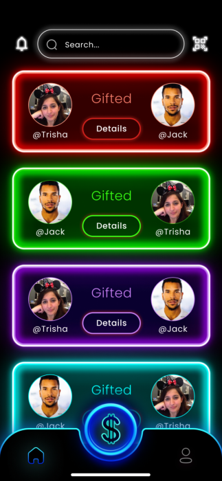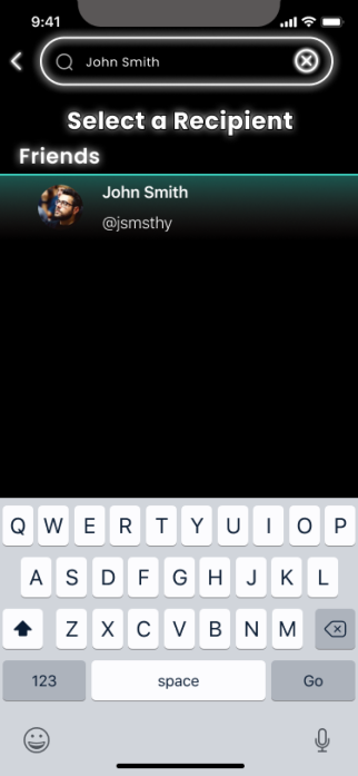 Select someone from your Bar Cash friends list or use the search bar at the top of the home screen.